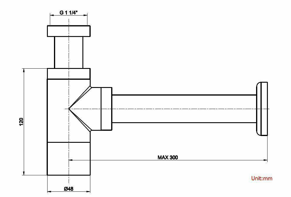 Approx. 90mm adjustable from the bottom of the waste to the height of the bottle trap outlet
