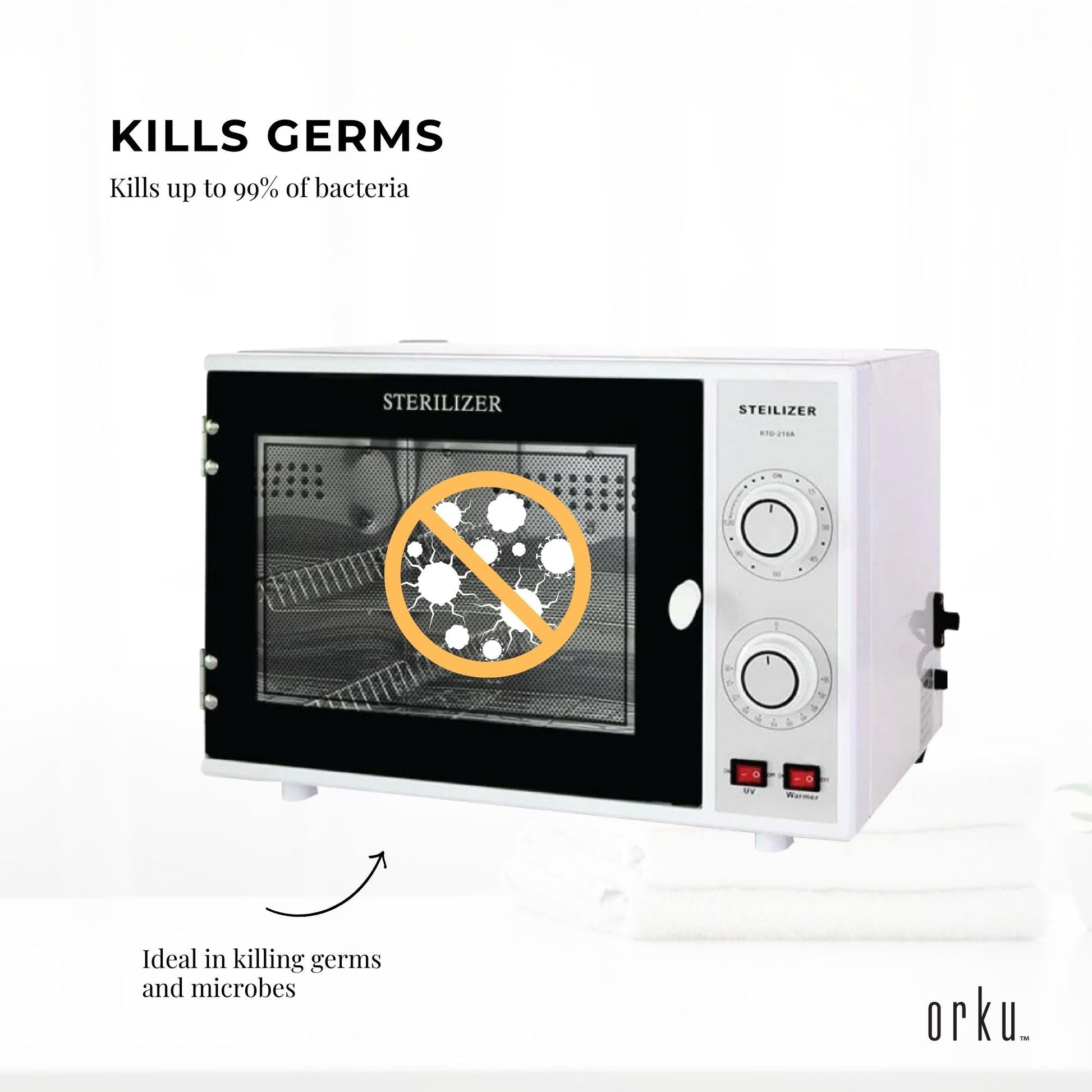 This machines uses Ultraviolet light and Ozone to effectively cleanse and sanitise, destroying germs, and microbes that may cause contamination. A powerful and natural purifier, ozone leaves no chemical residue, hence making it ideal and effective in sterilising tools.