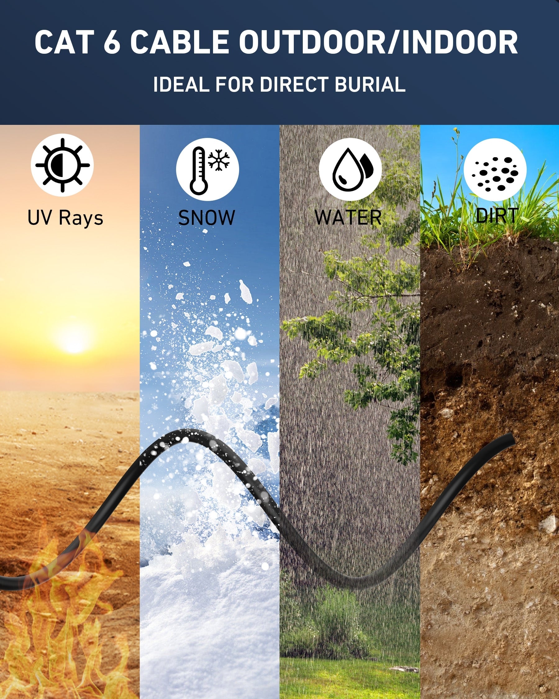 BENFEI 701BL 305M CAT6 UTP 1000Mbps Waterpoof Ethernet Cable 1000FT for Outdoor