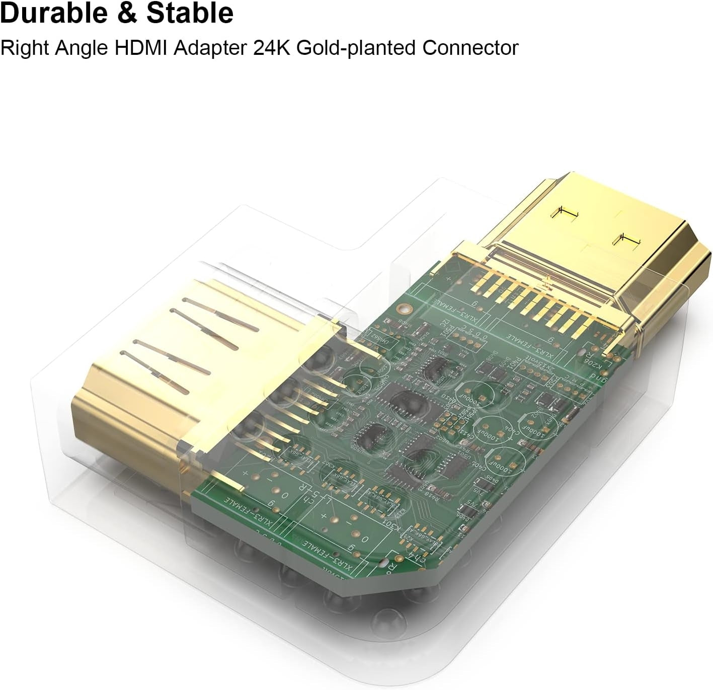 Providing the flexibility without risking of bending your HDMI cables excessively which may damage the cable or the ports on your expensive equipment, this adapter effectively protects devices been damaged by multiple plug & unplug, extend lifespan of devices and hdmi cable.
