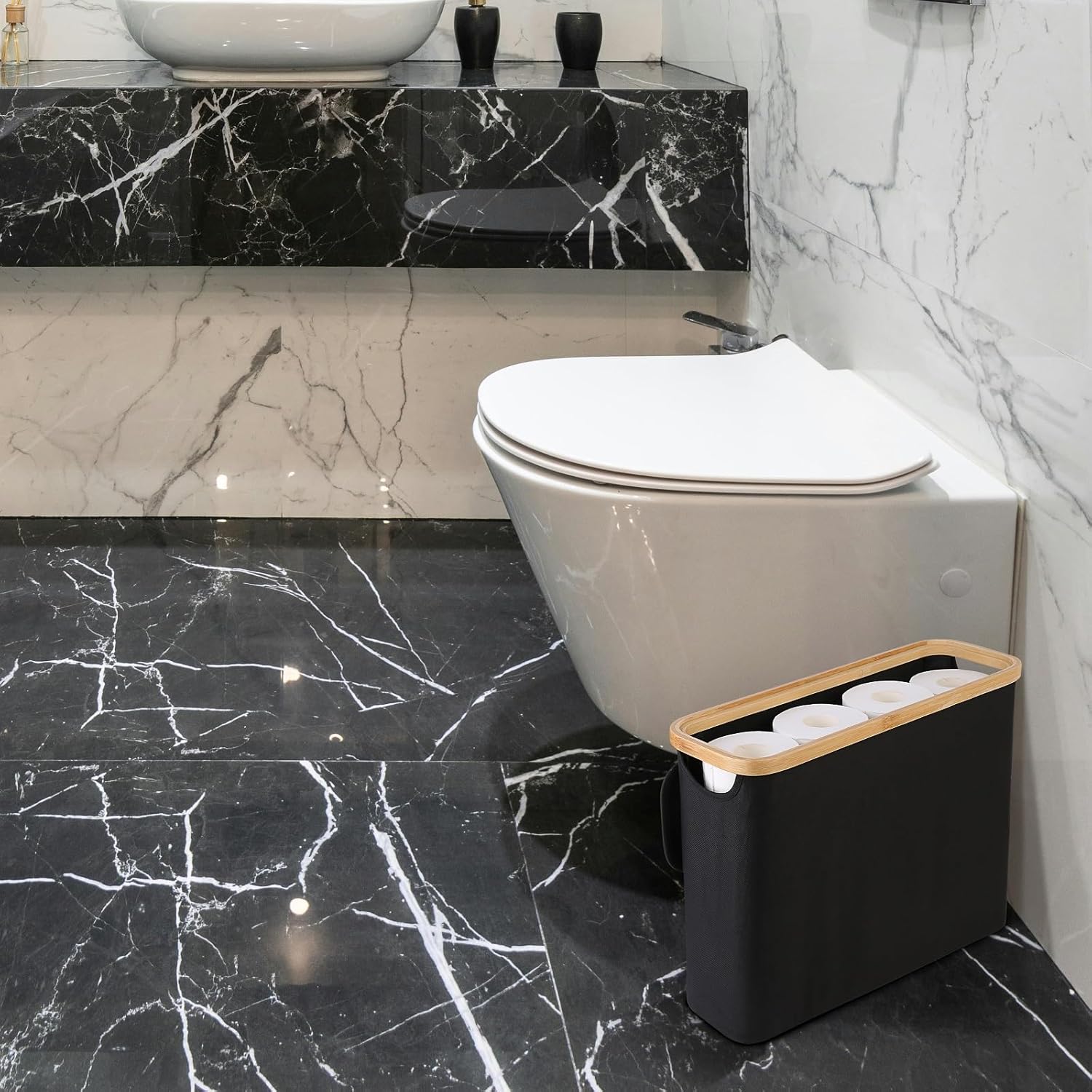 - LARGE STORAGE CAPACITY: This slim basket holds up to 12 regular toilet paper rolls or 9 jumbo rolls, helping you stay fully stocked and organized. A perfect fit for small bathrooms, closets, RVs, or under-sink spaces.