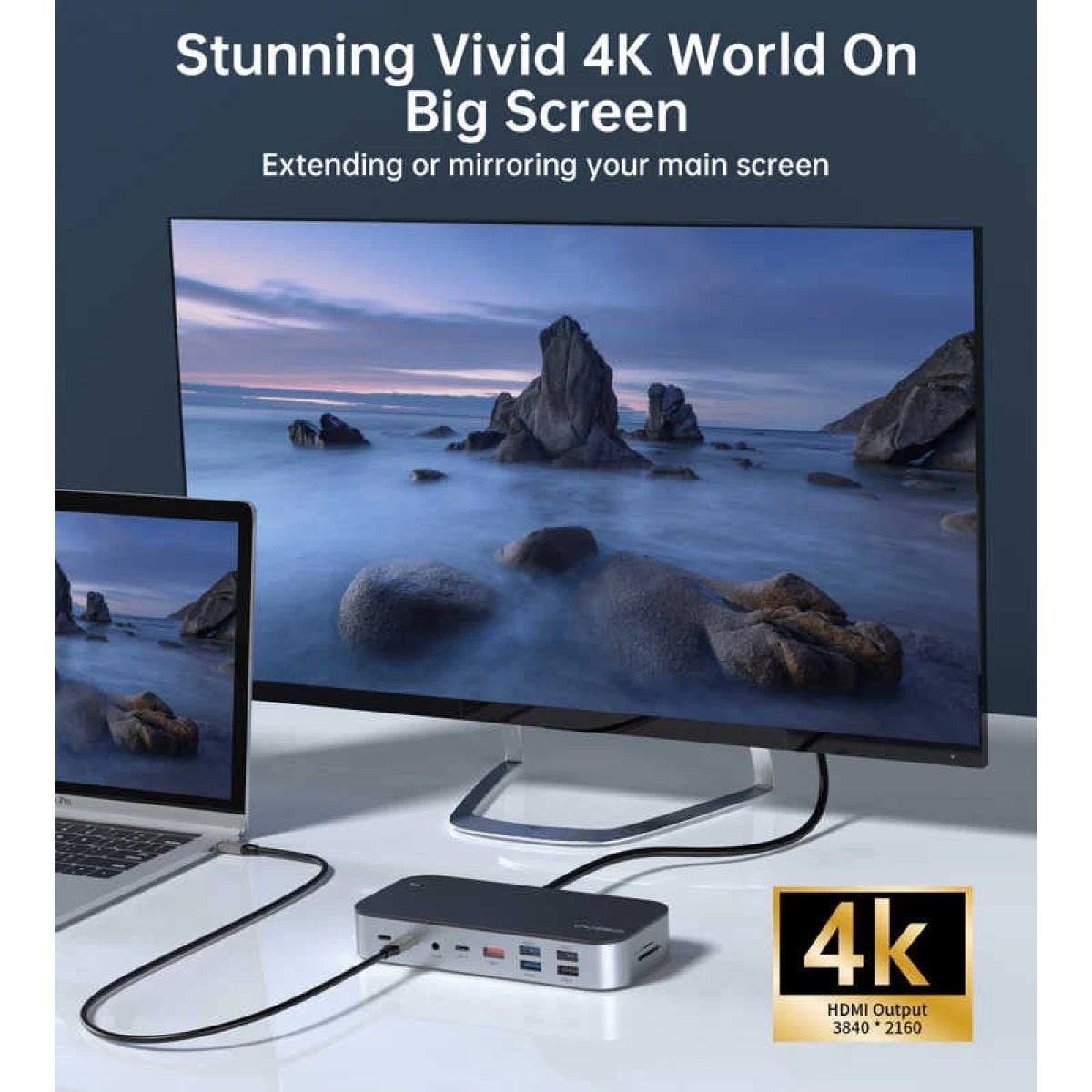 Cast your screen with HD HDMI adn VGA ports.HDMI resolutions is 4k, 3840x2160. Cast yoru screen for presentations or to setup multiple monitors. Use the Gigabit Ethernet port to connect to your home or workplace network.