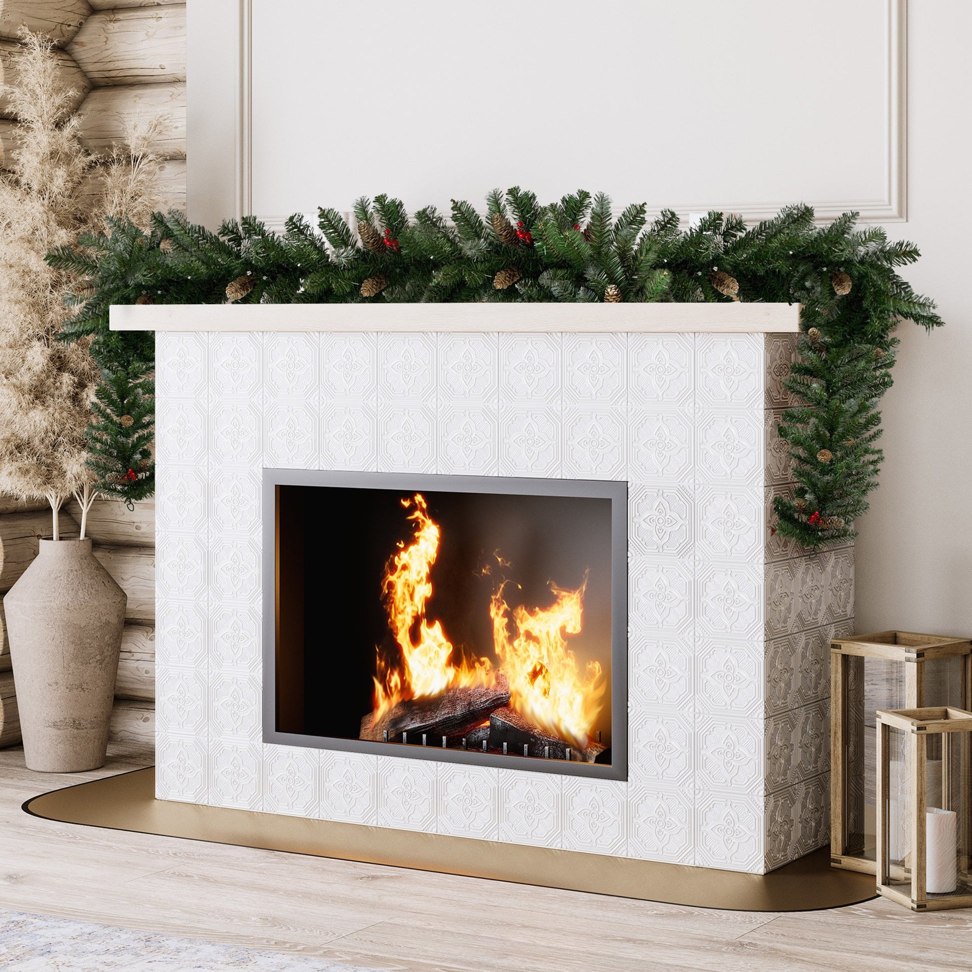 Adorned with pine cones and red berries, it is perfect for creating a cheerful and welcoming atmosphere during the joyous season.