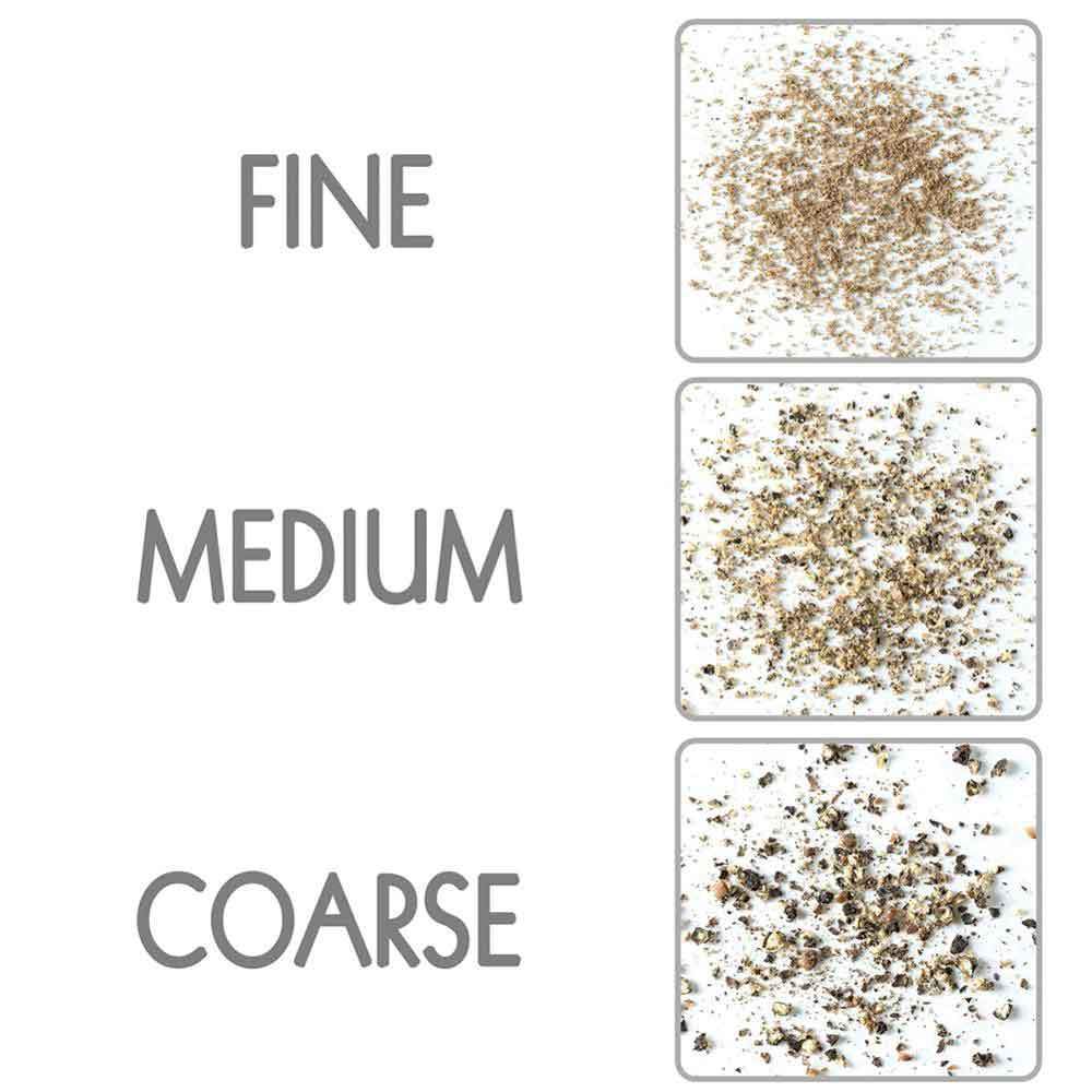 - Adjustable coarseness: allows you to grind your pepper and salt as coarse or fine as your dish requires.