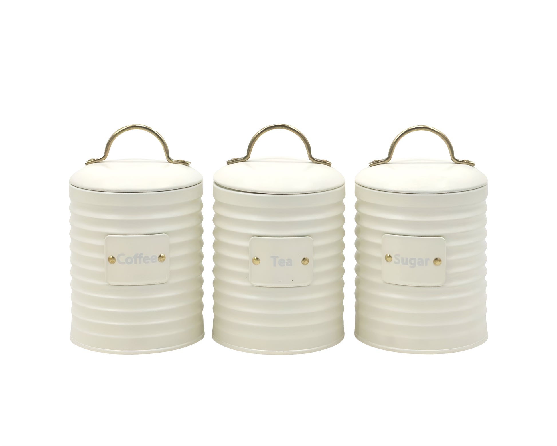 1 x Set 3 Corrugated Metal Coffee Tea Sugar Storage Tins