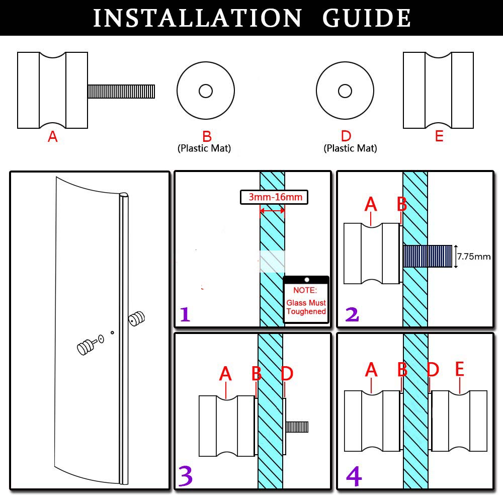 Shower Glass Door Knob Bathroom Round Back-to-Back Handle SUS304 Brushed Nickel