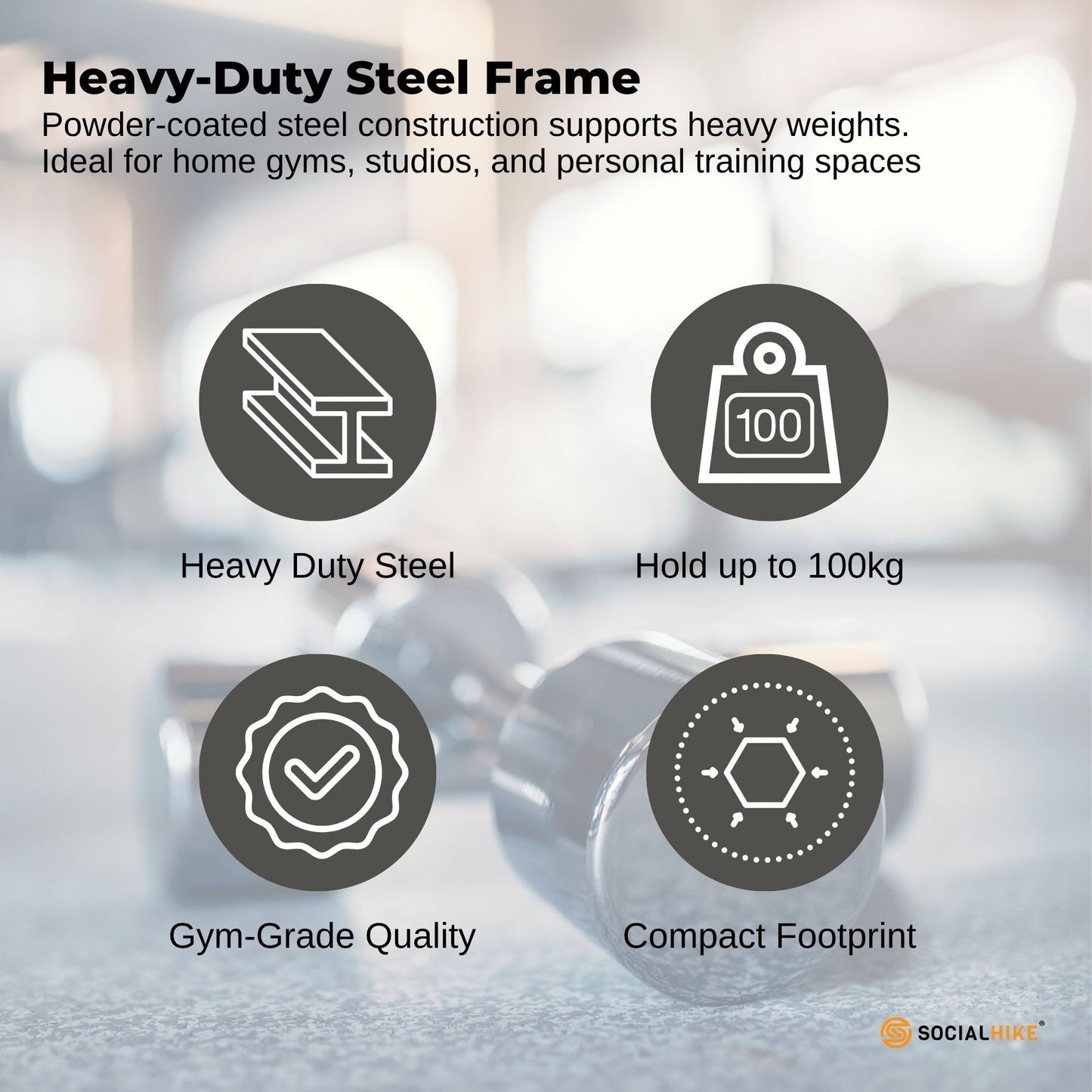- Heavy-Duty Steel Frame: Powder-coated steel construction supports heavy weights—ideal for home gyms, studios, and personal training spaces.