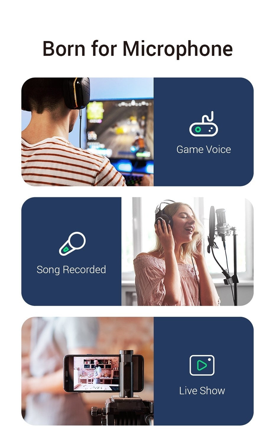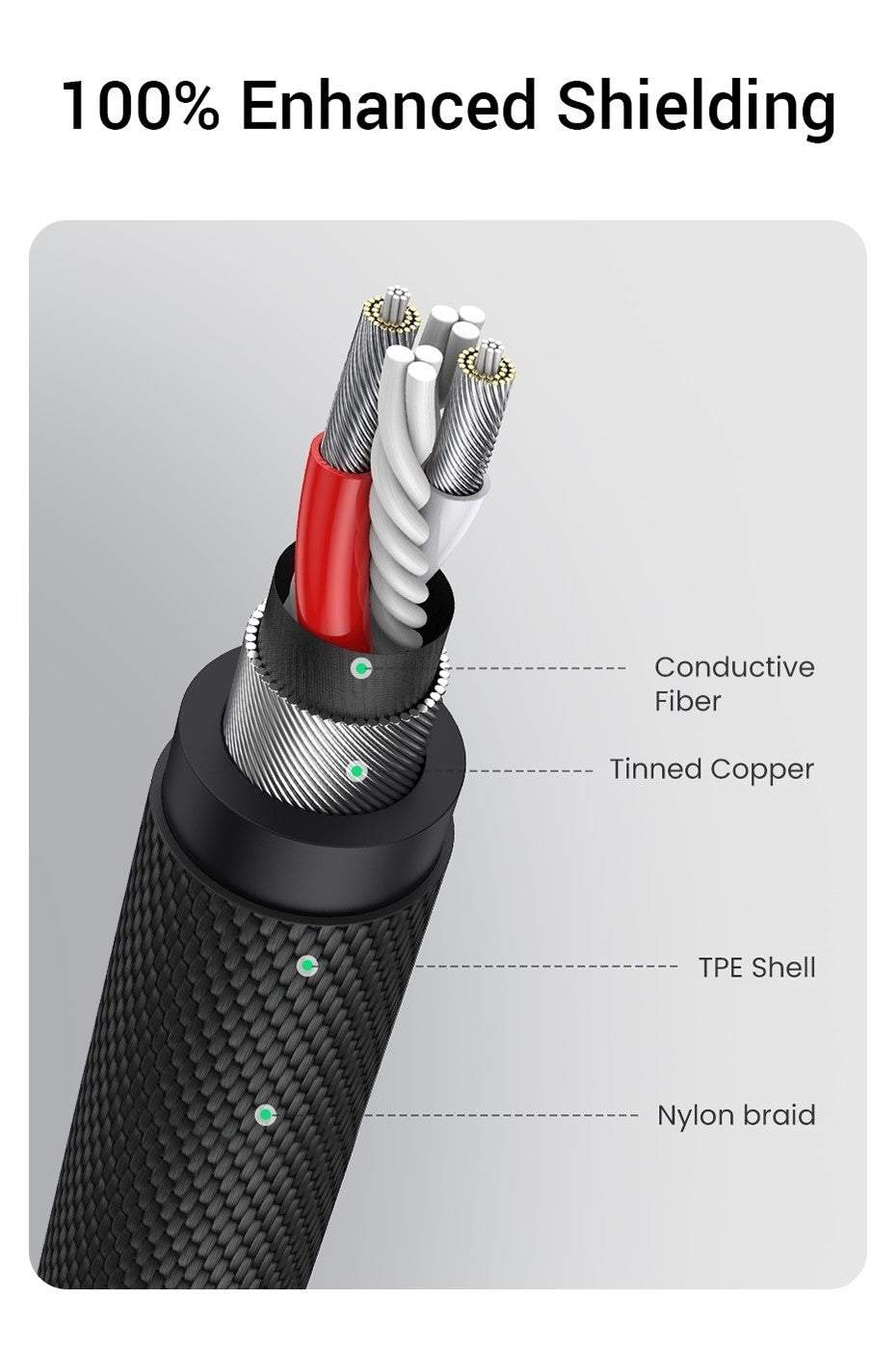 UGREEN Headphone Audio Mic Cable is well manufactured and delivers outstanding performance. Combined silver-plated copper conductor with 3-lay robust shielding(tinned copper, TPE jacket, nylon braid), the Headphone Jack to Jack Cable endues no-loss, noise-free, high-fidelity audio experience. 24K gold-plated plugs provide faster conduction of the audio signal and ensure stable & undelayed audio transmission.