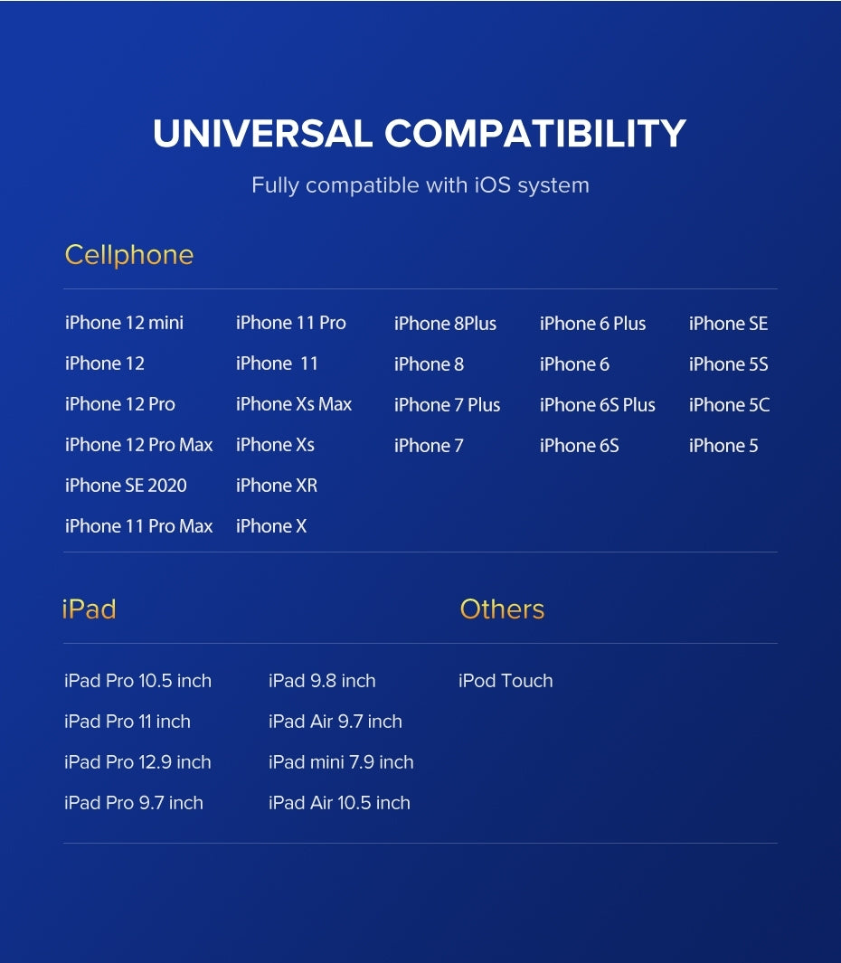 Using iPhone 's original C89/C189 terminal, and iPhone original chip built-in, UGREEN 8-pin charger cable ensures 100% compatibility of charging and syncing with all 8-pin iOS devices. No warning message pop-ups. [NOTE] UGREEN 8-pin cable upgrades simultaneously with the iOS system, built to last.